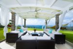 The villa features an array of shared spaces for guests to gather, dine or relax. The Main house Family Room features handmade silk rugs and custom Italian sofas ideal for an afternoon of reading, movie night or late-night conversation. Our lush lawns are a magnet for being barefoot and playing games such as volleyball, Badminton. Bean-Bag Toss, Free Weights and Yoga to name a few. On the outside we offer an outdoor, 6-foot deep, negative edge, salt water swimming pool with two submerged seating areas. On a tier below the pool are outdoor custom built jetted hot-tubs (with heated and air temperature options) for guests to indulge.